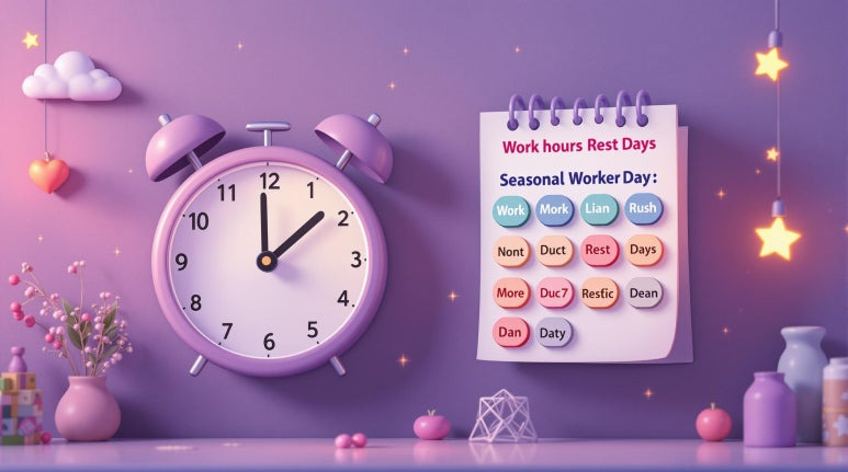 • 1일 8시간, 주 40시간 기본• 당사자 합의 시 주 12시간 한도 내 연장근로 가능• 농번기 특례 적용 가능(별도 협의)
