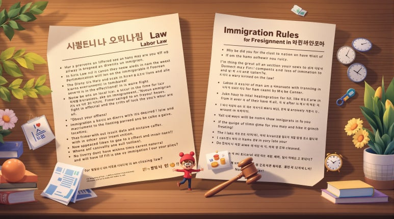 외국인 고용 관련 노동법과 출입국관리법의 핵심 조항을 숙지해야 합니다. 근로기준법은 내국인과 동일하게 적용되며, 외국인 근로자에게도 최저임금, 근로시간, 휴가 등 동일한 근로조건을 보장해야 합니다.